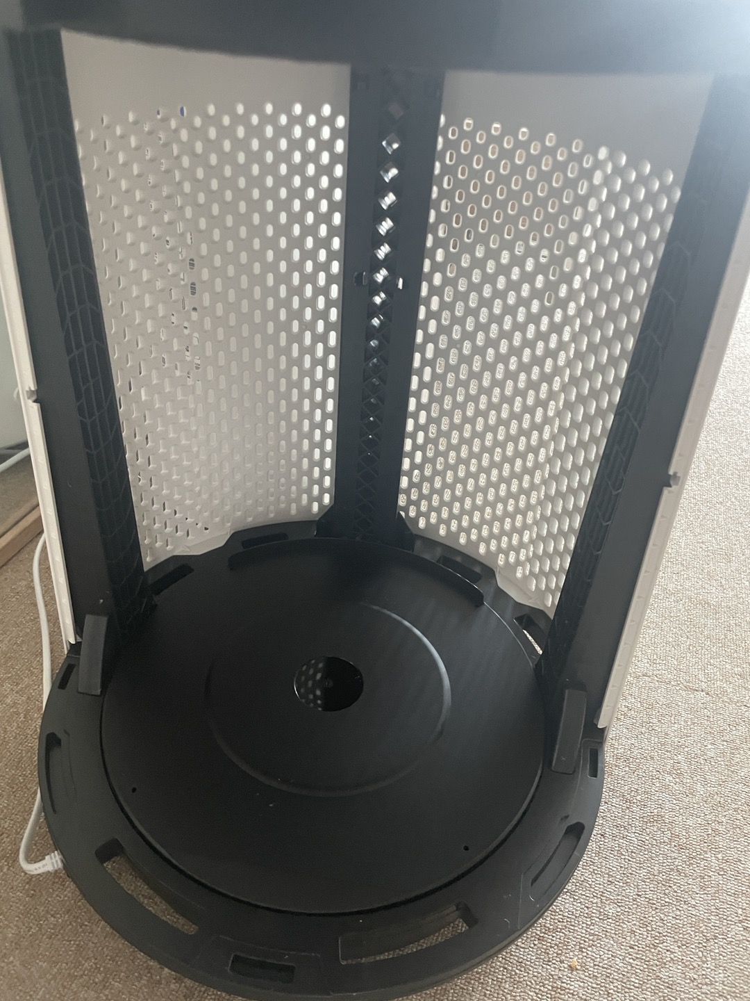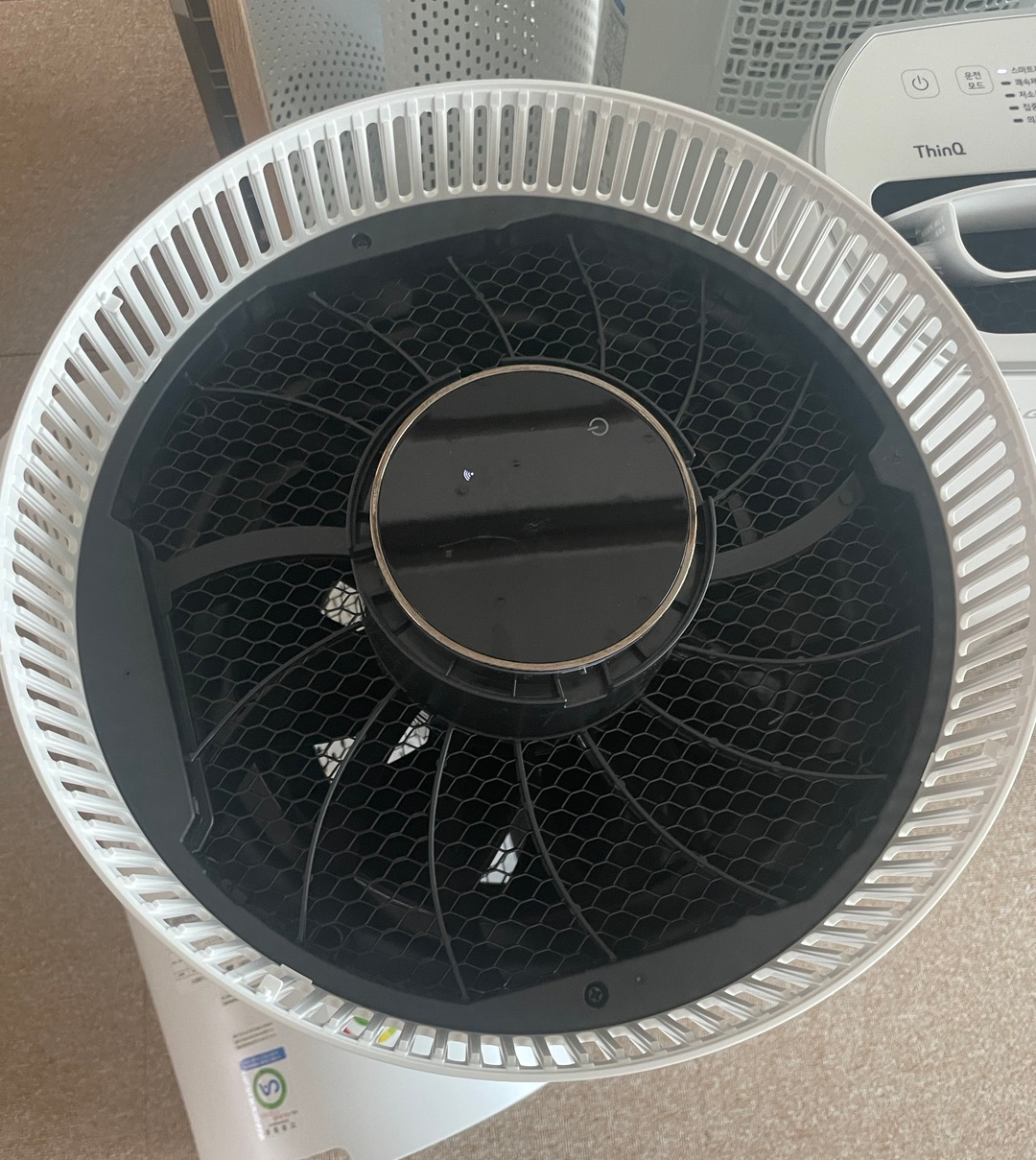 3. 상단 팬 날개 커버부분은 시계방향으로 돌리면 커버가 분리가 됩니다. 분리하여 팬 날개 주변도 물티슈로