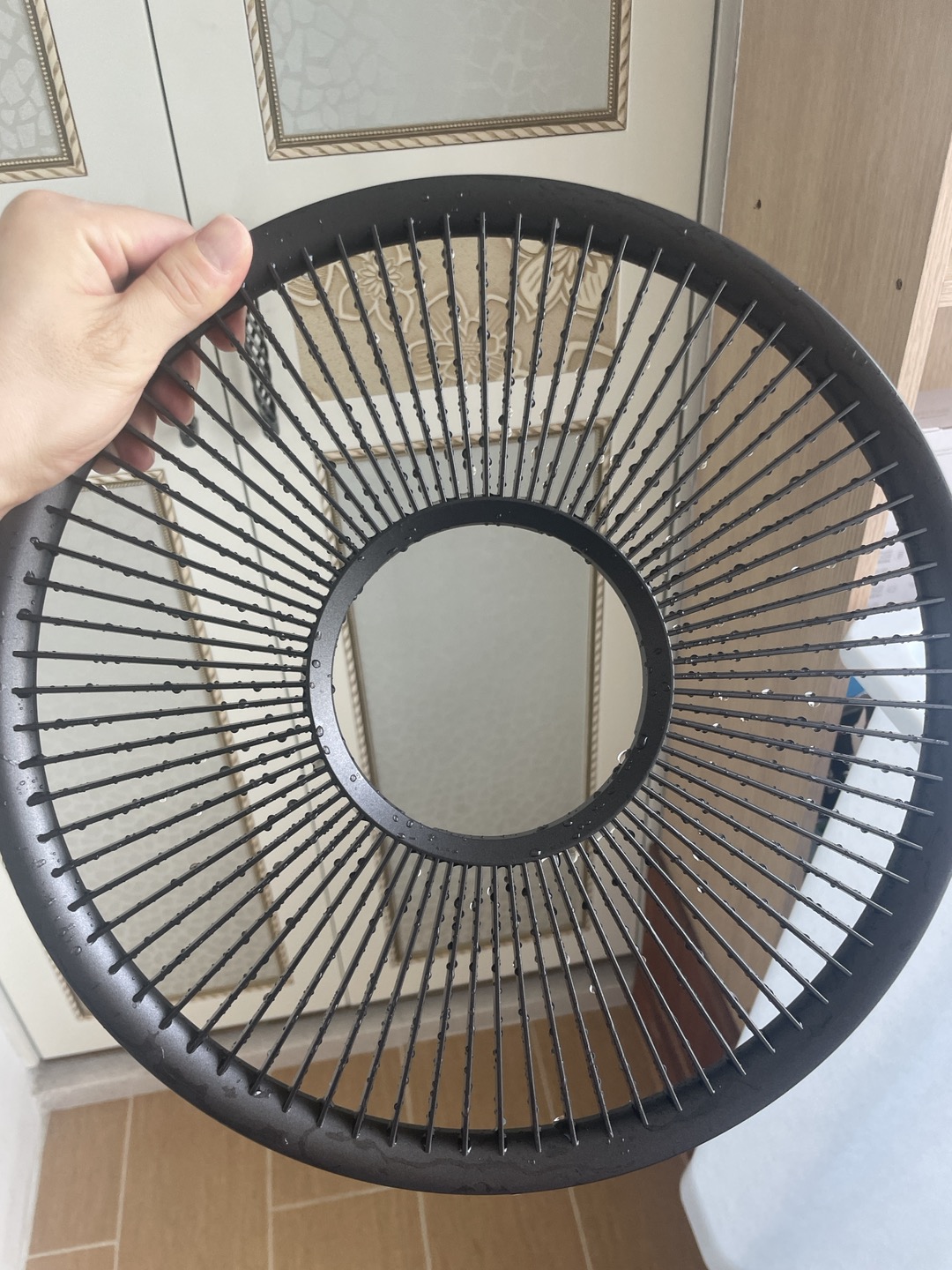 분리된 팬 커버는 물로 청소하여 건조시킵니다.