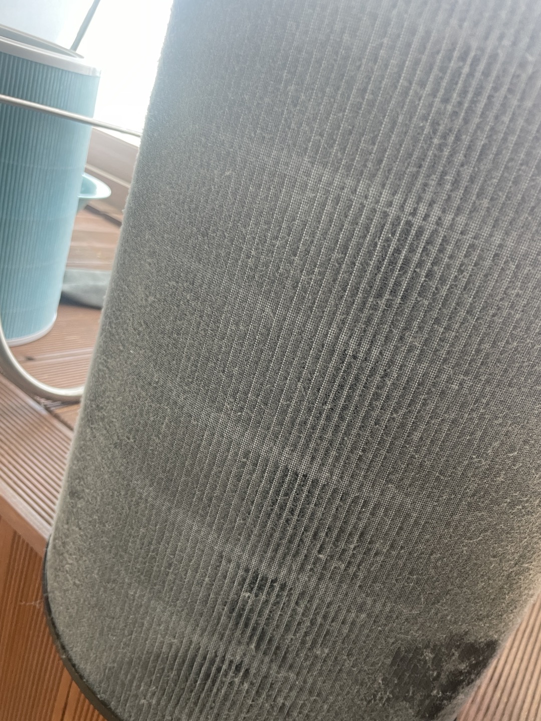 1. 공기청정기의 에어필터를 탈착하고 , 필터 장착 부위에 먼지가 많이 끼므로
