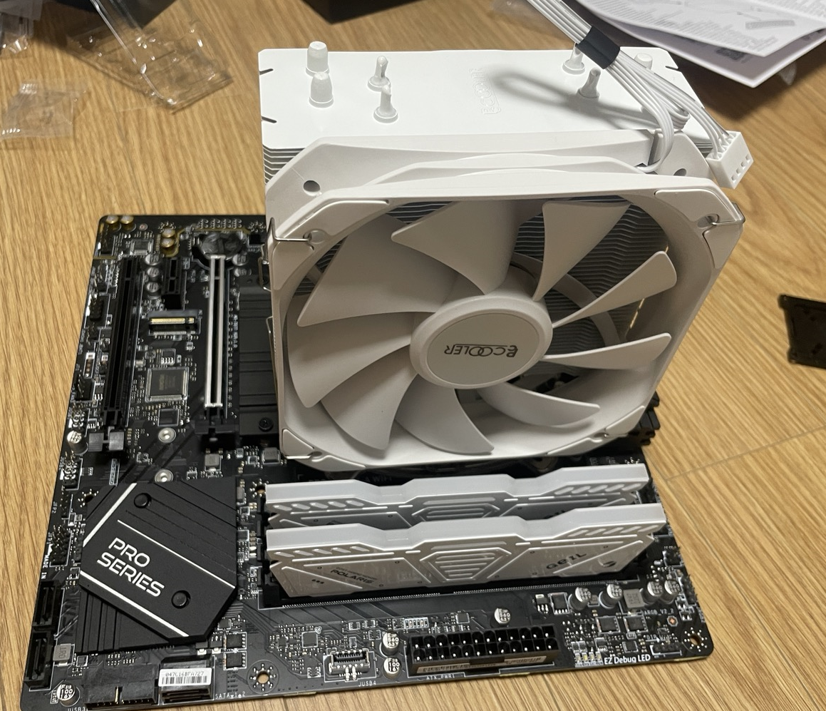 5. 메인보드 CPU에 PCCOOLER PALADIN 400 공 쿨러를 장착한 사진입니다.
