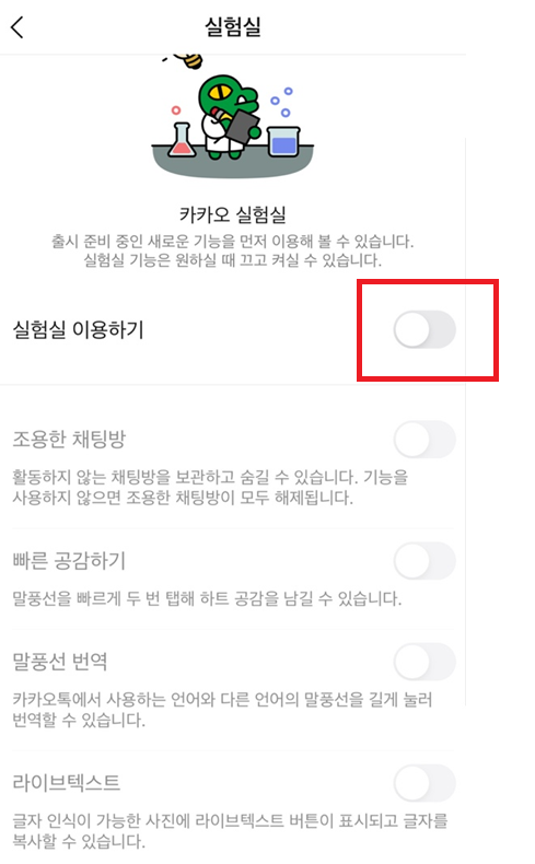 사용하고 있는 카카오톡 버전이 10.2 ver 이여야 가능하므로