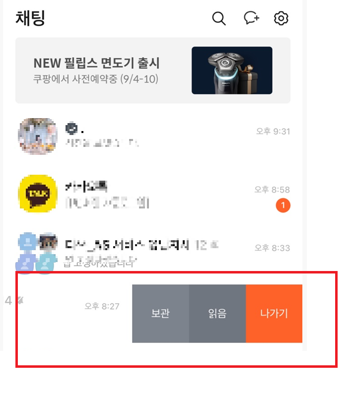 6. 다시 채팅방으로 돌아와서 꼴 보기 싫은 채팅방을 정하고