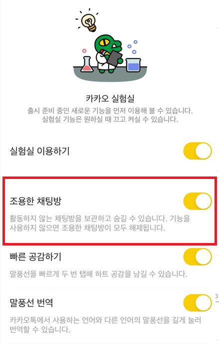 5. 조용한 채팅방 기능을 활성화 시킵니다.