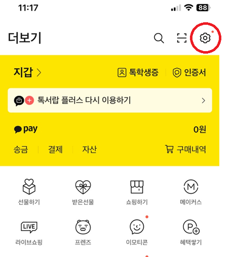 1. 카톡을 실행하여 우측 하단의 점점점을 선택합니다.