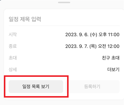 4. 하단의 일정 목록 보기를 클릭합니다.