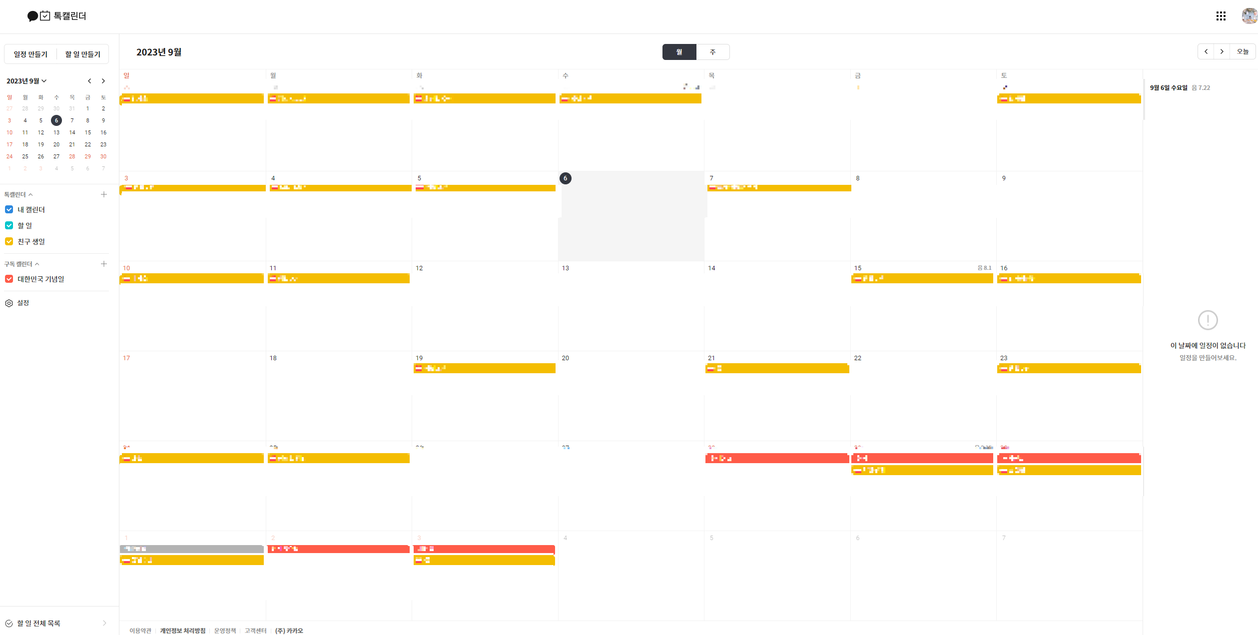 6. 자 이제 카카오톡 등록된 친구들 중 9월에 생일자들이 보기 좋게 캘린더에 표시됩니다.
