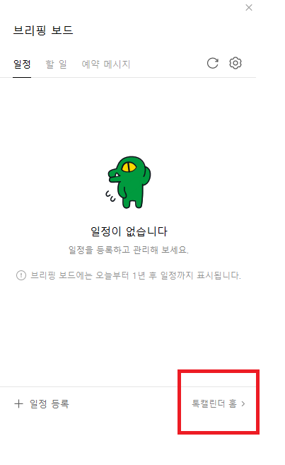 2. 우측 하단에 톡캘린더 홈을 클릭합니다.