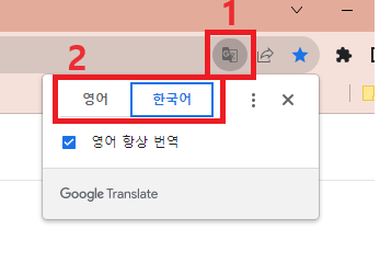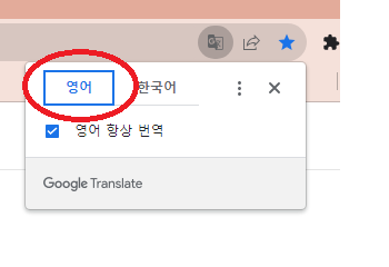 1) 브라우저를 실행하여 한국어 변역을 영어로 변환시켜줍니다.