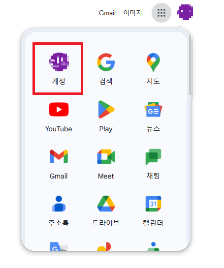1. 구글 홈페이지에 접속하여 로그인을 하여 계정을 클릭합니다.