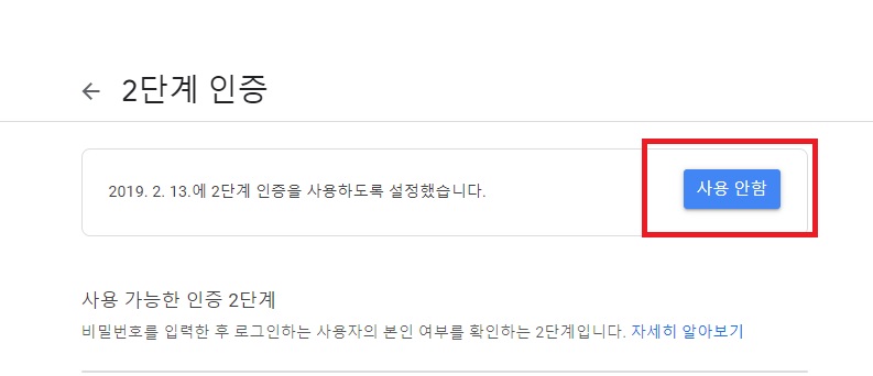 1. 2단계 인증에서 사용안함을 누르게 되면 2단계 인증이 해제 됩니다.