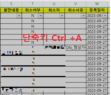 일단 단축키 Ctrl +A 를 눌러서 데이터 전체 영역선택을 해줍니다.