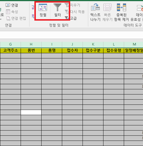 4. 이 상태에서 다시 한번 필터 또는 정렬을 클릭해주면