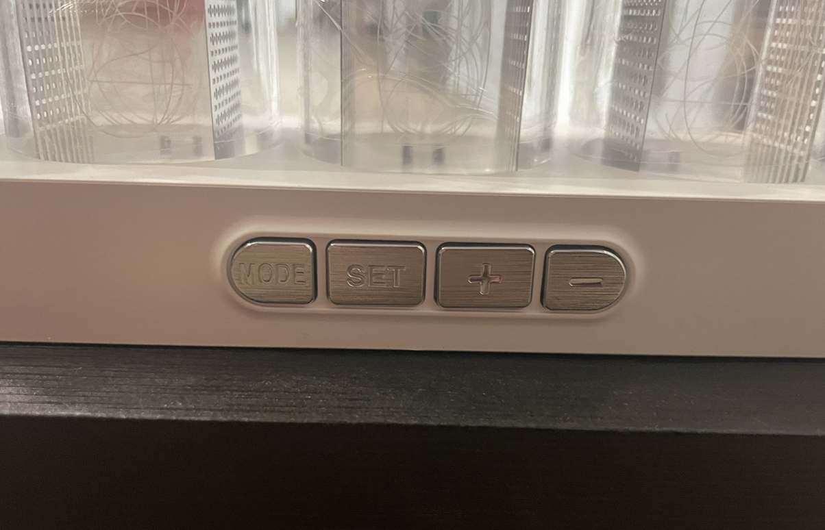 RGB LED 닉스 튜브 시계의 조작 버튼은 총 4개로 구성되어 있습니다.
