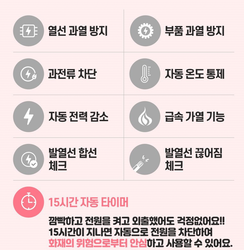과전압 및 과열시 전원이 차단되어 고온과열로 인한 화상이나 화재로부터 안심하고 쓸수있다는것도 큰 장점이네요