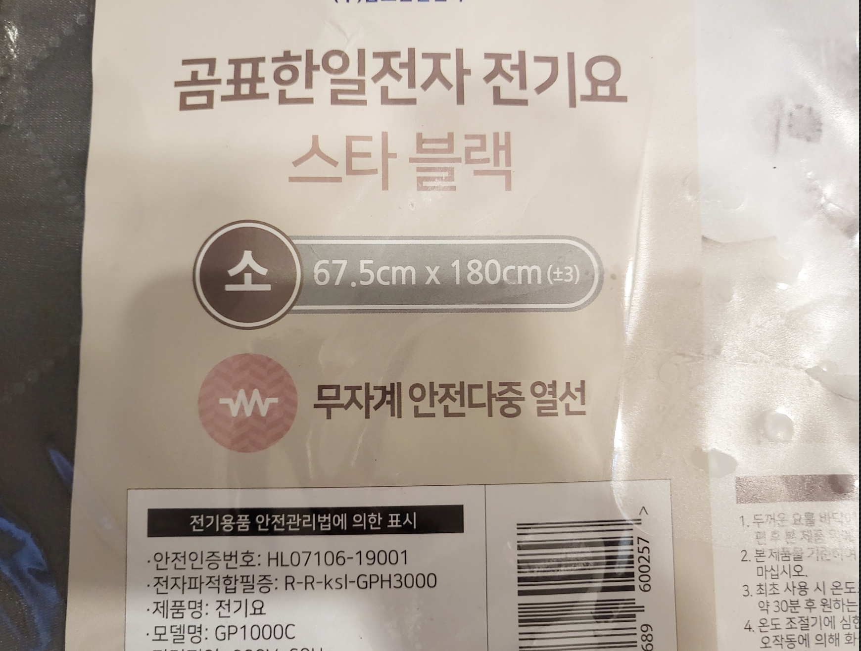 기존에 쓰던 전기매트가 고장이 나서 하나 새로 구매했습니다.^^