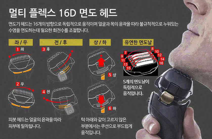 면도기 헤드가 턱과 얼굴 윤곽에 맞춰서 맞춰서 밀착되기때문에 좀더 세밀하고 , 수염이 절삭이 잘되더라구요.