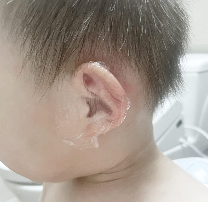않았어요 ㅠㅠ 그런데도 귀에는 물이 안들어가게 스티커가 붙여졌습니다.