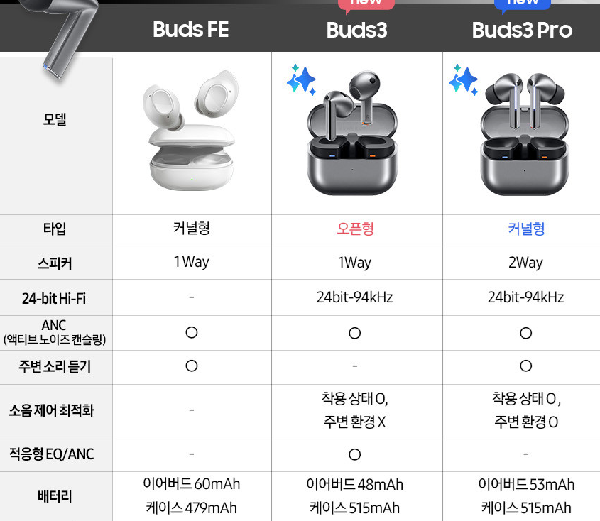 갤럭시버즈3와 갤럭시 버즈3 차이점