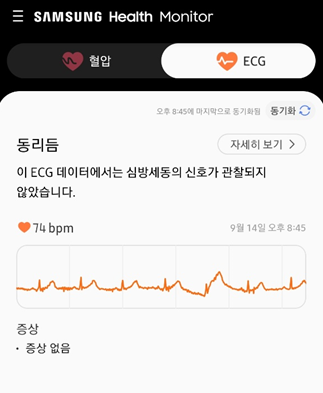 ECG 체크는 심전도 체크 기능이라고 보시면 됩니다. 심상 상태를 체크한다라고 보시면 됩니다.