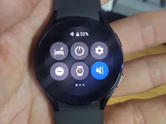 화면 위에서 아래로 내리면 핸드폰 설정화면 나오듯이 갤럭시워치4도 설정 화면이 나옵니다 ㅎㅎ 안드로이드에 친숙한 분들이라면 손쉽게 적응이 가능해보입니다.