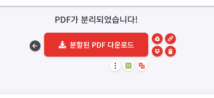 5. 분할 된 PDF 파일을 다운로드를 누르게 되면 파일로 다운로드 받을 수 있습니다.