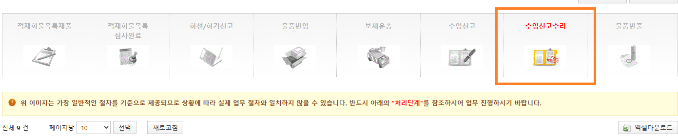 제 상품은 적하목록제출 부터 시작하여 수입신고수리 까지 진행이 되어있는것을 확인 할 수 있습니다.