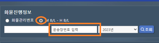 M B/L- H B/L을 선택 후 내가 구매한 해외 운송장 번호를 조회를 합니다.