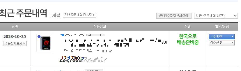 15일이 지났는데도.. 한국으로 배송 준비중만 떠있네요.