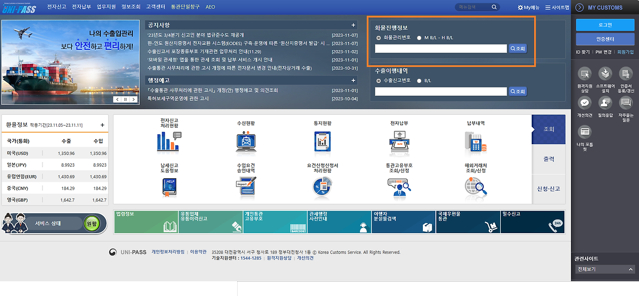 수출입 화물의 통관 절차를 온라인으로 처리 할 수 있는 굿 서비스입니다.
