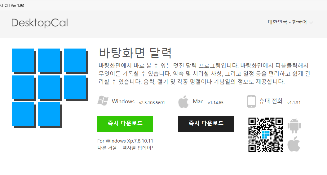 1.바탕화면 달력 무료 프로그램 설치하기 위하여 아래 사이트에 접속합니다.