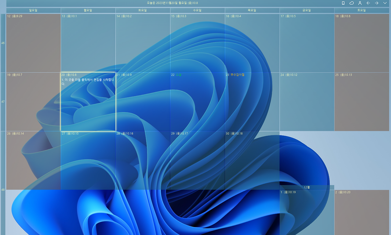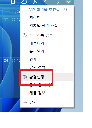 불편해서 바탕화면 달력 프로그램을 사용하여 여기에서 회사 일정을 정리하고있습니다.