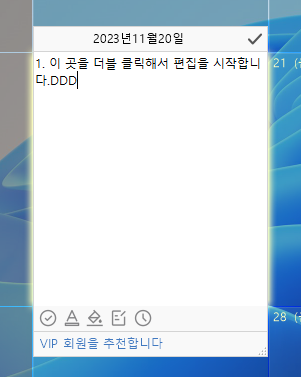 원하는 날자에 마우스를 더블 클릭하면 메모를 할 수 있습니다.