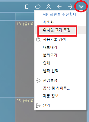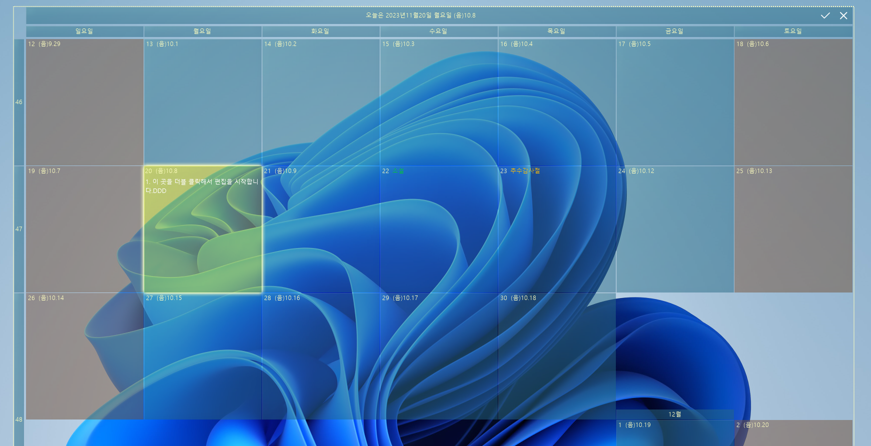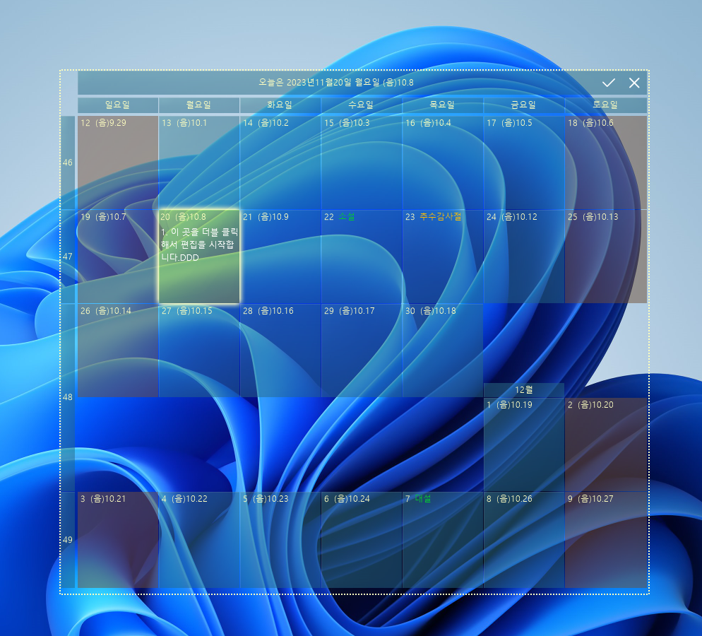 2. 바탕화면 캘린더 화면 위치 및 사이즈 조정 기능