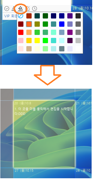 2) 달력 날자 칸 색상 변경 일정 날자의 칸 색상을 원하는 색상으로 변경이 가능합니다.