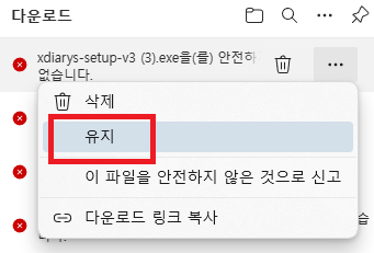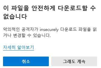 다운로드를 누르게 되면 위와 같이 다운로드 안전을 할 수 없다고 나오는데