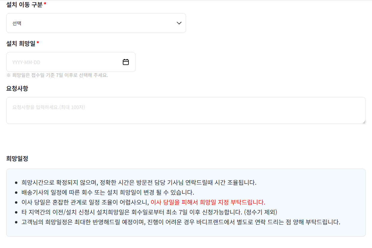 단!! 이사 당일에는 혼잡하기때문에 이사 후 그 다음날로 신청하는게 베스트입니다.