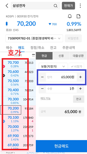 2)호가금액을 보고서 호가금액보다 낮은 가격으로 매도를 걸어 놓습니다.