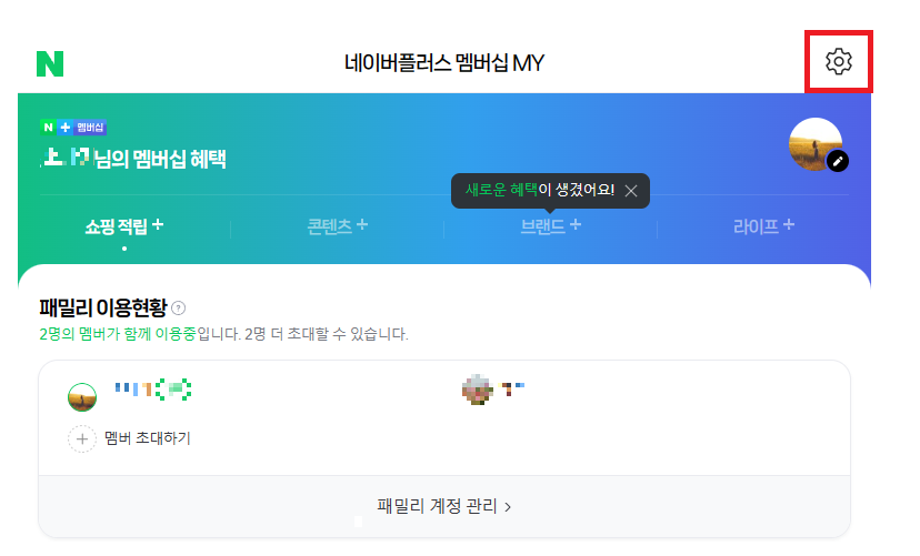 4. 네이버플러스 멤버십 관리 메뉴를 선택합니다.
