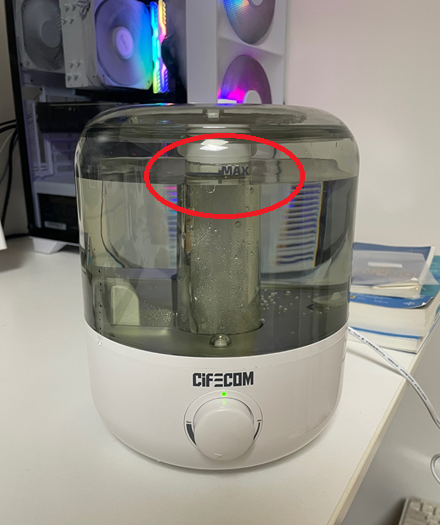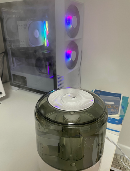 제품 물을 MAX까지 채워넣고 , 가습기를 돌려보았습니다.