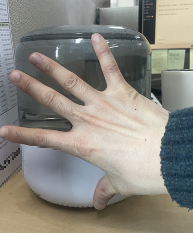 제품 사이즈는 성인손 기준 한뼘정도의 콤팩트한 사이즈입니다.