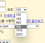 포트번호는 추가 연결하려는 이메일주소에서 포트번호를 확인하여 입력합니다.