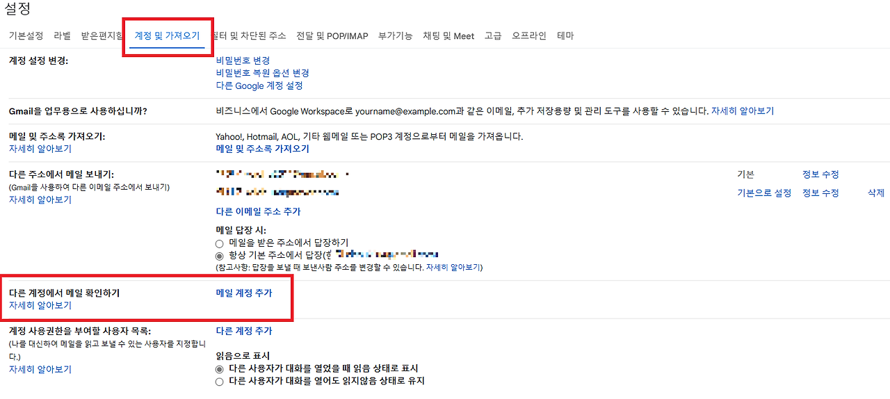 3.계정 및 가져오기- 다른 계정에서 메일 확인하기- 메일 계정 추가 를 선택합니다.