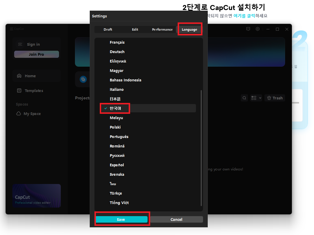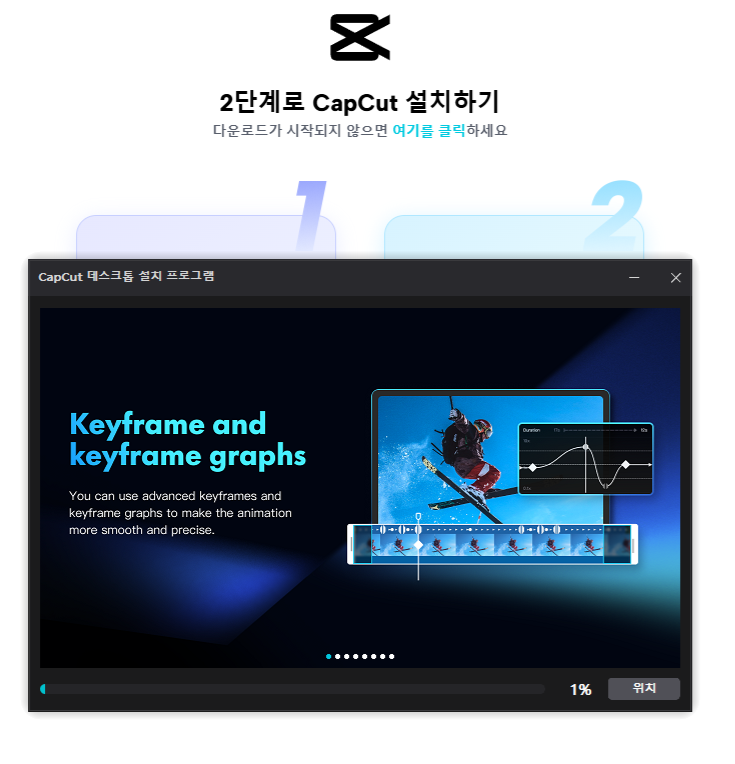 3. 다운로르를 누르게되면 설치파일이 다운로드되고, 다운로드 된 캡컷 설치 실행 파일을 클릭하면