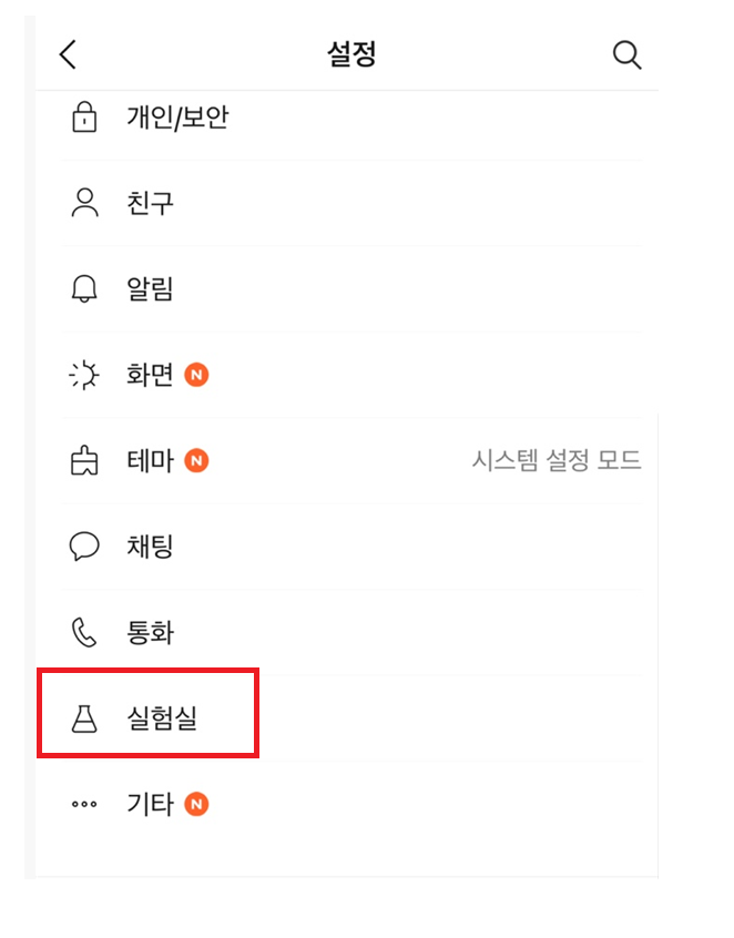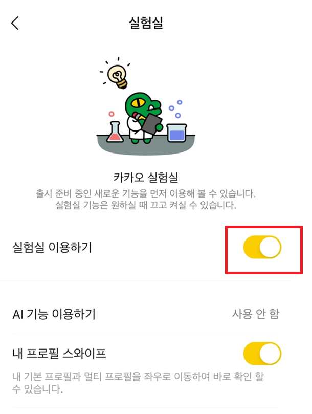 4. 실험실 이용하기 설정을 활성화 시키면 단톡방에