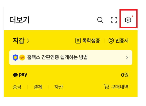 2. 우측 상단에 있는 설정 아이콘을 선택합니다.