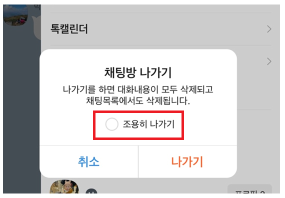 조용히 나가기 체크하고 나가기하면 단톡방에 ~님이 나가셨습니