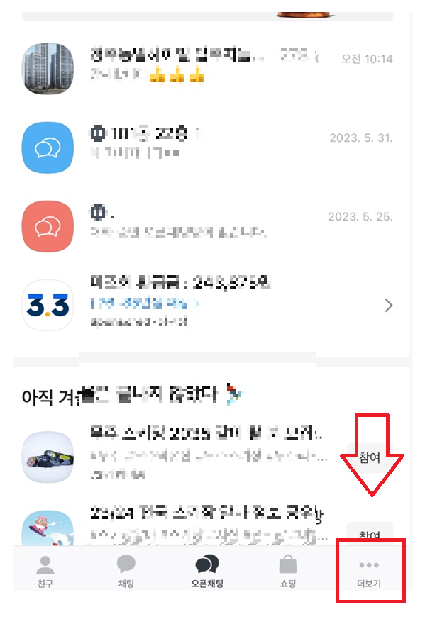 1. 카카오톡을 실행하여 우측 하단에 있는 더보기 메뉴를 선택합니다.