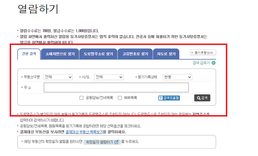 등기부등본 발급 방법